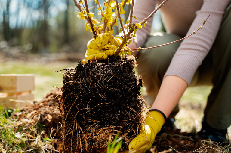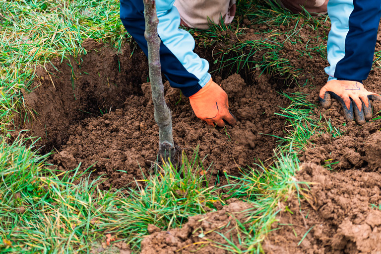 3. Pflanzloch ausreichend groß machen: Etwa doppelt so breit und tief wie der Wurzelballen.